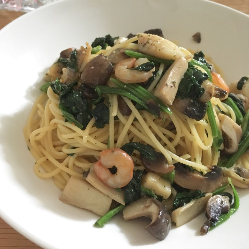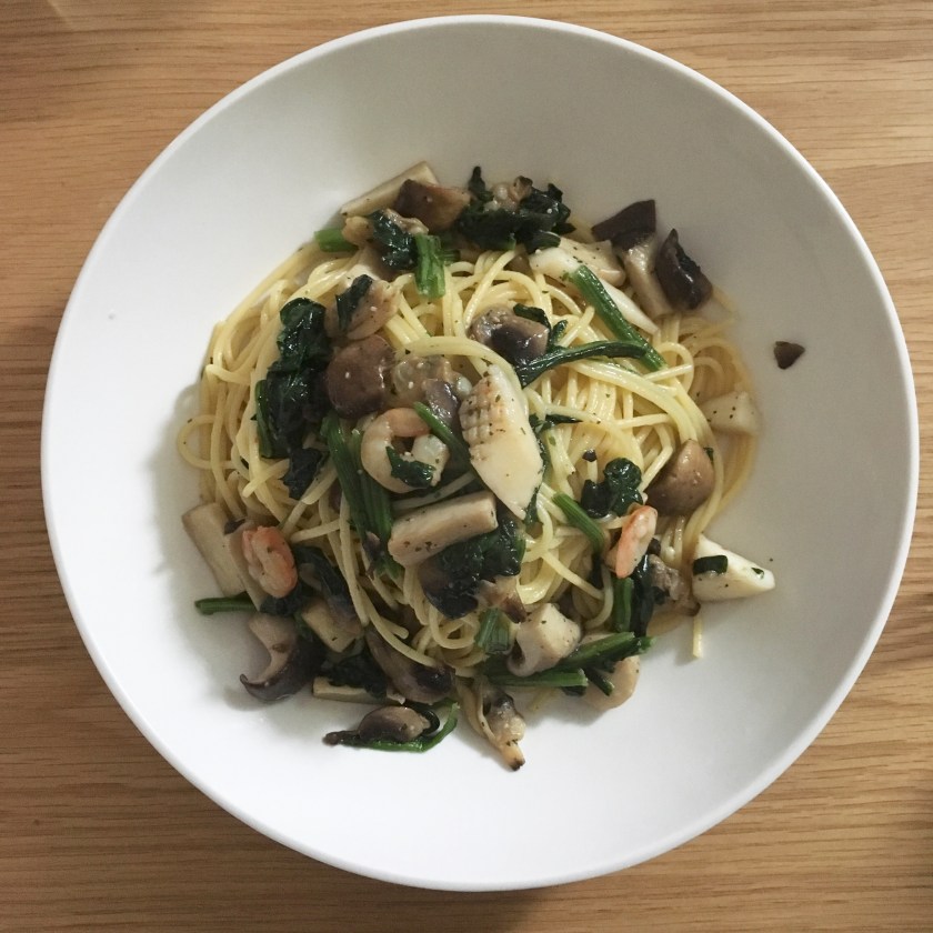 きのことシーフードのオイルパスタ